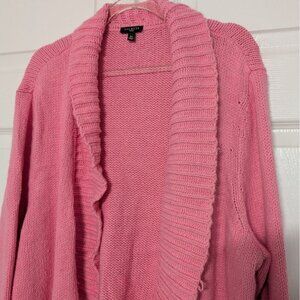 Talbots Shawl Collar Cardigan Womens Size 2X Pink Cotton Blend Open Sweater