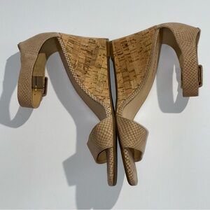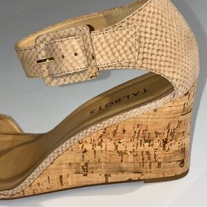 Talbots Shay Tan Taupe Faux Snakeskin Open Toe Wedge Cork Sandal Size 11 M