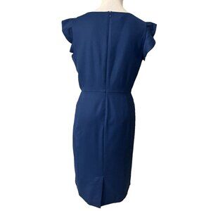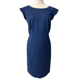 Talbots Sheath Dress 14P Blue Italian Flannel Short Ruffle Sleeve Career Church