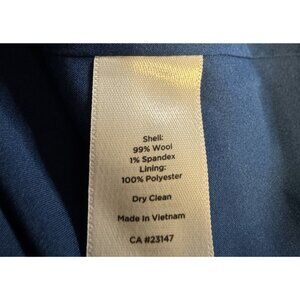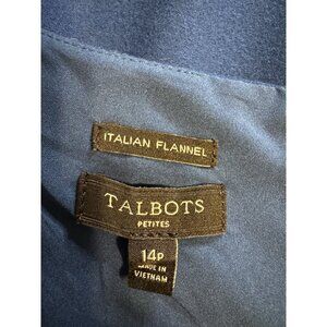This pretty dress is from Talbot's in a petite size 14. Made of soft Italian Flannel. Solid dark blue in color. Fully lined. Made of thin wool and spandex. Has a back zipper. Short flutter trim sleeves.