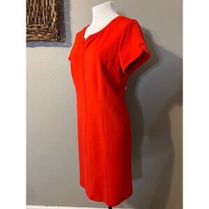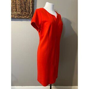 Talbots Sheath Dress 14P Red Ponte Short Sleeve Stretch Career Church