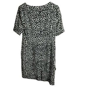 Talbots Sheath Dress 8P Cheetah Leopard Print Black White Short Sleeve Career