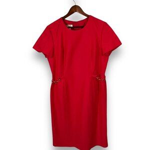 Talbots Sheath Dress Size 14 Chain Detail Pink Short Sleeve Knee Length
