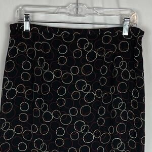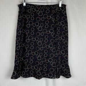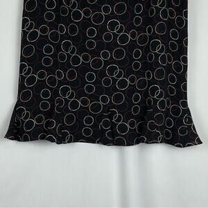 Talbots Sheer Black Circle Print Silk Office Date Feminine Ruffle Skirt Size 12