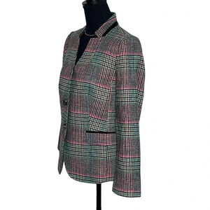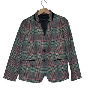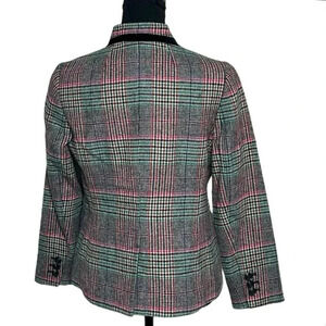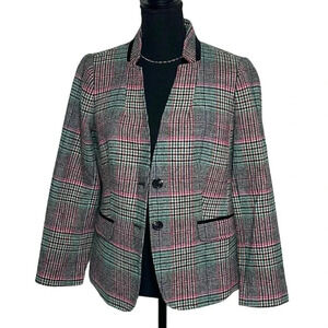 Talbots Shetland Aberdeen plaid green pink black white plaid blazer size 8P