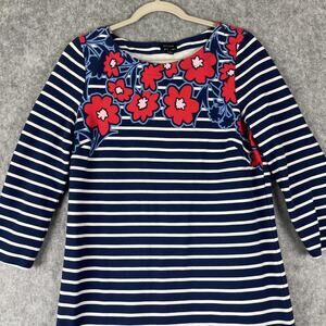 Talbots Shift Dress Womens Large Floral Stripe 3/4 Sleeve Cotton Colorful Casual