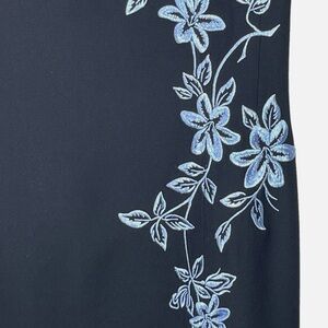 Talbots Shift Dress Womens Size 8 Black V Neck Floral Embroidered Cap Sleeve