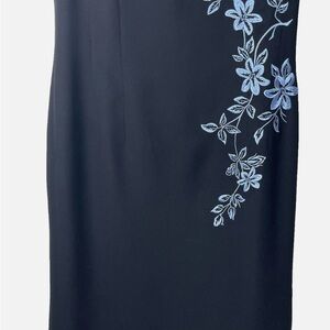 Talbots Shift Dress Womens Size 8 Black V Neck Floral Embroidered Cap sleeve classic