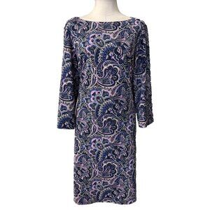 Talbots Shift Dress XL Extra Large Paisley Blue 3/4 Long Sleeve Washable NEW