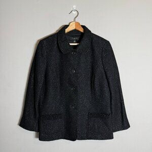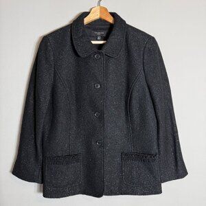 Talbots Shimmer Wool Blazer Jacket Overcoat Women's 14P Black Sparkly Holiday