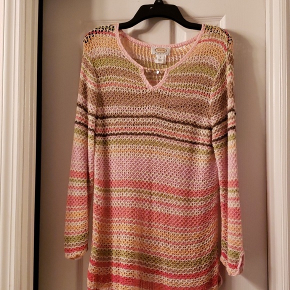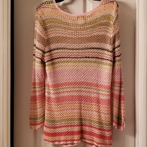 Multi-Colored, Crocheted, shirt by Talbots. Only worn once. Fabric is 56% Silk, 43% Nylon and 1% Other Fabric. From a smoke free, pet free, home.