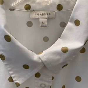 Talbots Polka Dot Shirt. Large petite. Darts at bust. Excellent condition. Measures 22” pit to pit and 14” pit to bottom hem.