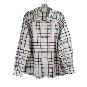 Talbots Shirt Button Up White Plaid Print LS Shirt Womens Plus Size 3X Cotton