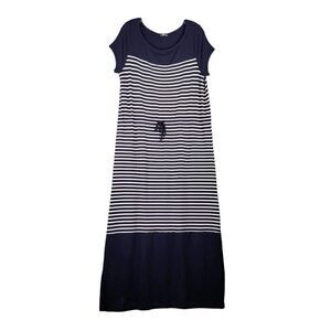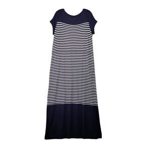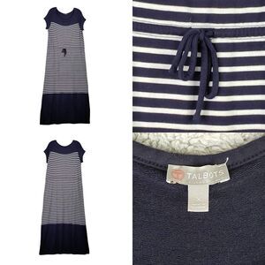 Talbots Shirt Dress Stretch Short Sleeve Size X Striped Navy Blue White Modal
