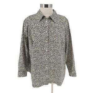 Talbots Shirt Leopard Print Long Sleeve Button Up Collared Top Petite 2XP