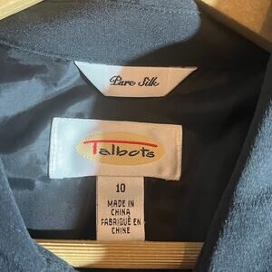 Talbots Shirt Silk Dress Women Size 10 Black Pure Button Up Knee Length Career