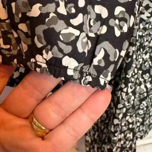 Talbots Shirt Size Large Womens Black Gray Leopard Print Top Ruffle Blou…
