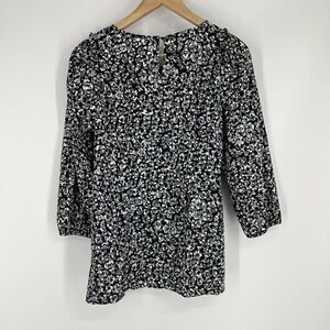 Talbots Shirt Size Medium Womens Black Gray Leopard Print Top Ruffle Blouse