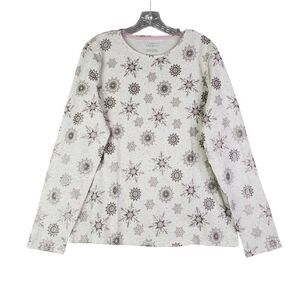Talbots Shirt Top Women’s Size Large Snowflake Christmas Gray Long Sleeve New LS
