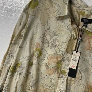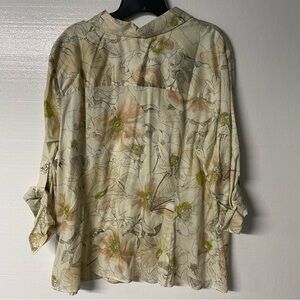 NEW Talbots Shirt Women 20P Beige Ruffle Button Front Cotton Floral Roll Tab Sleeve