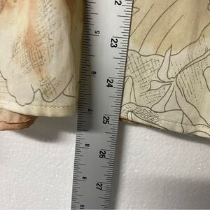 Talbots Shirt Women 20WP Beige Ruffle Button Front Cotton Floral Roll Tab Sleeve