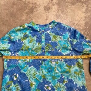 Talbots Shirt Women Medium Petite Blue Button 1/2 Floral Sequin Shine Lightweigt