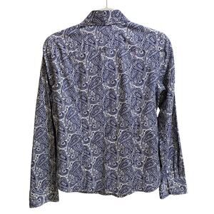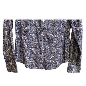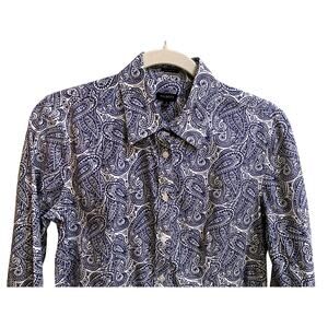 Talbots Shirt Women Size 8 Blue White Paisley Button Front Blouse