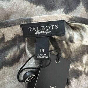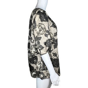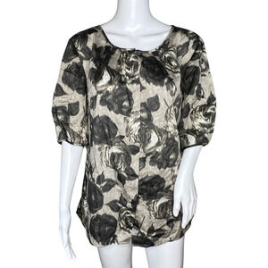 Talbots Shirt Womens 14 Black Gray Floral Flowers Puff Sleeve Roses Romantic