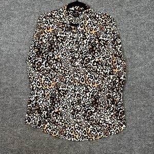 Talbots Shirt Womens 1X Brown Cheetah Print Blouse Button Up Chambray Plus Size