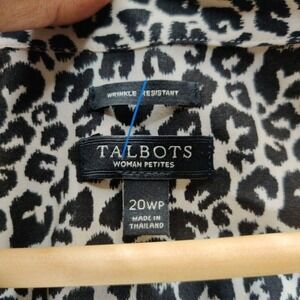 Talbots Shirt Womens 20WP Black White Animal Print Button Down