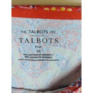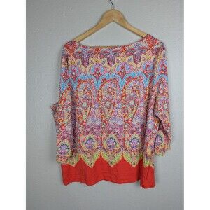 Talbots Shirt Womens 2X Multicolor Paisley Floral Boho Tunic Top Stretch Plus
