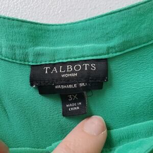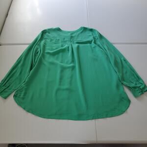 Talbots Shirt Womens 3X Green Washable Silk Long Sleeve Plus Size Blouse Pocket
