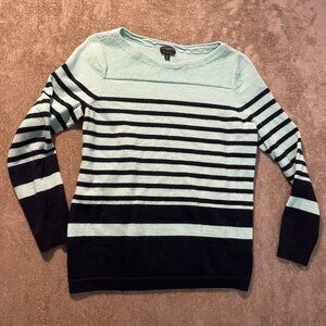 Talbots Shirt Womens L Petite Sweater Merino Wool Mint Blue Horizontal Preppy