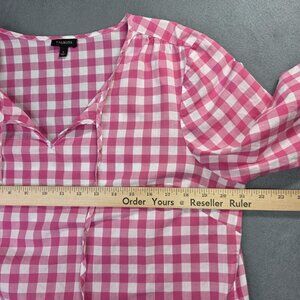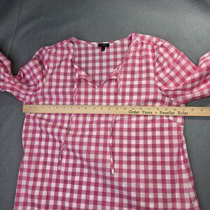 Talbots Shirt Womens L Pink White Gingham Check Tunic Cotton 3/4 Sl Peasant Boho