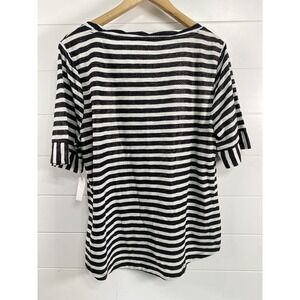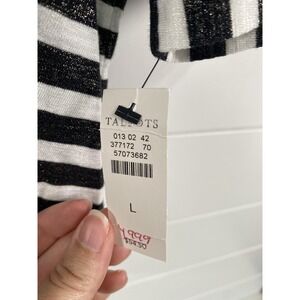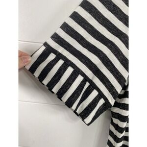 Talbots Shirt Womens Large Black White Striped Ruffle Sleeve Metallic Tee Top