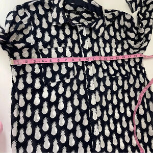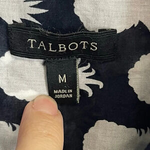 Talbots Shirt Womens Medium Button Up Blouse Navy Blue White Pineapple