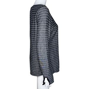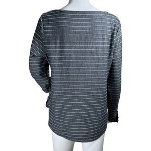 Talbots Shirt Womens Medium Gray White Striped Lightweigth Sweatshirt Athleisure
