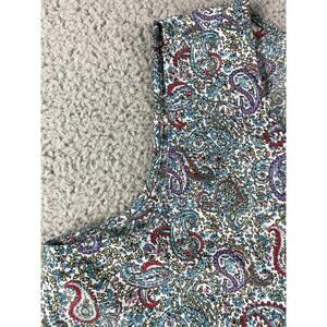 Talbots Shirt Womens Medium Tank Blue Multicolor Floral Paisley Business Church