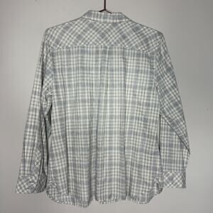 Talbots Shirt Womens PL Large Petite Gray White Plaid Long Sleeve Button Up Top