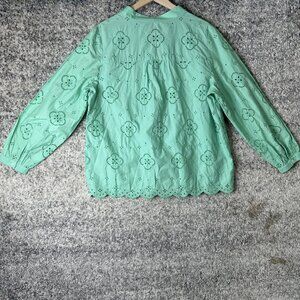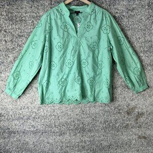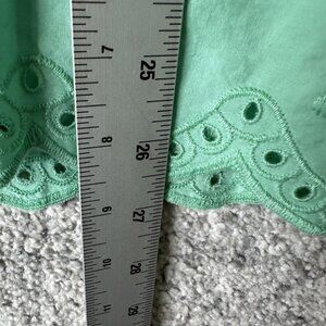 Talbots Shirt Womens Petite Large Green Eyelet Split Neck Scallop Hem Boho
