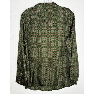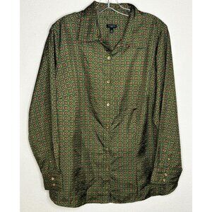 Talbots Shirt Womens Plus 16W Green Geometric Print Button Front Long Sleeve