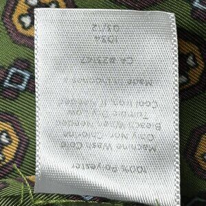 Color/Pattern: Olive green base with multicolor geometric medallion print