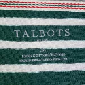 Talbots Shirt Women’s Plus Size 2X Striped Green Christmas Candy Cane New