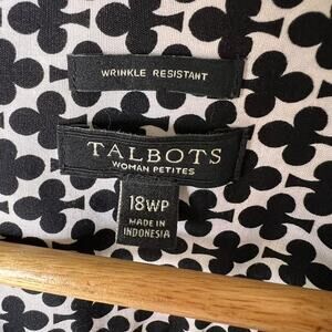 Talbots Shirt Womens SZ 18WP Black & White Clover Wrinkle Resistant Long Sleeve