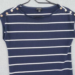 Talbots Shirt Womens Small Blue Striped Button Shoulder Short Sleeve Stretch