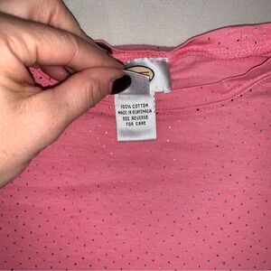 Talbots Shirt Women's Small Pink Metallic Silver Shimmer Polka Dot Blouse Cotton Soft