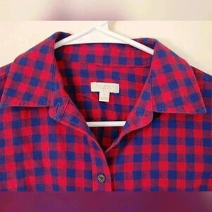 Talbots Shirt top button up Red Flannel 100% cotton blue plaid fall winter gorp