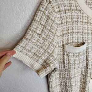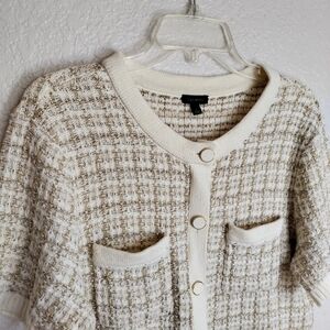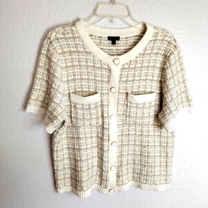 Talbots Short Sleeve Cardigan Metallic Jacquard Sz L