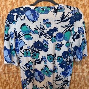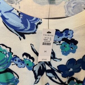 Talbots Short Sleeve Knit Sweater With Blue and Navy Floral Design