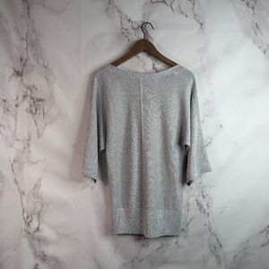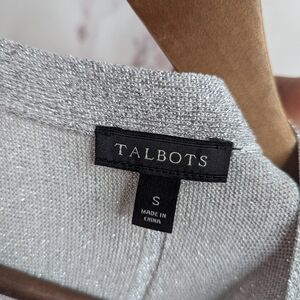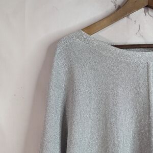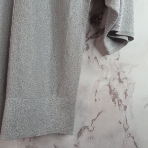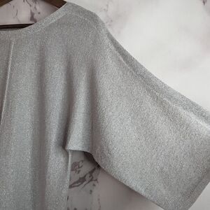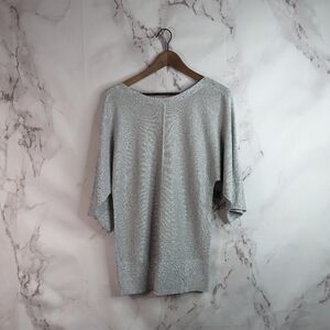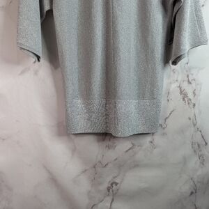 Talbots Short Sleeve Sweater Size Small Silver Sparkle Shimmer Metallic Knit Top